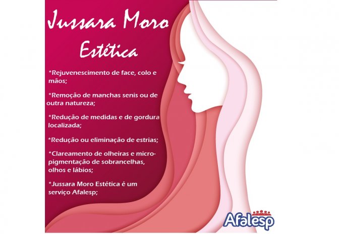 Desde 10/8, Jussara Moro está atendendo quinzenalmente na Afalesp, às quartas-feiras. Esteticista, há mais de 30 anos, Jussara oferece tratamentos a preços e condições convidativas para os associados.