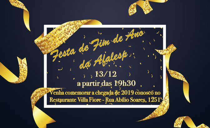 Notícias Participe da Festa de Final de Ano da Afalesp, dia 13/12! sábado, 8 de dezembro de 2018domingo, 9 de abril de 2023 afalesp