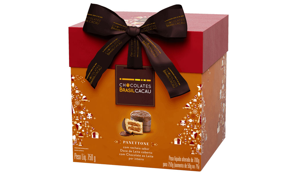 Produtos: Linha de panetones da marca Brasil Cacau. Opções de fruta, gotas de chocolates, trufado de chocolate, doce de leite e muito mais.