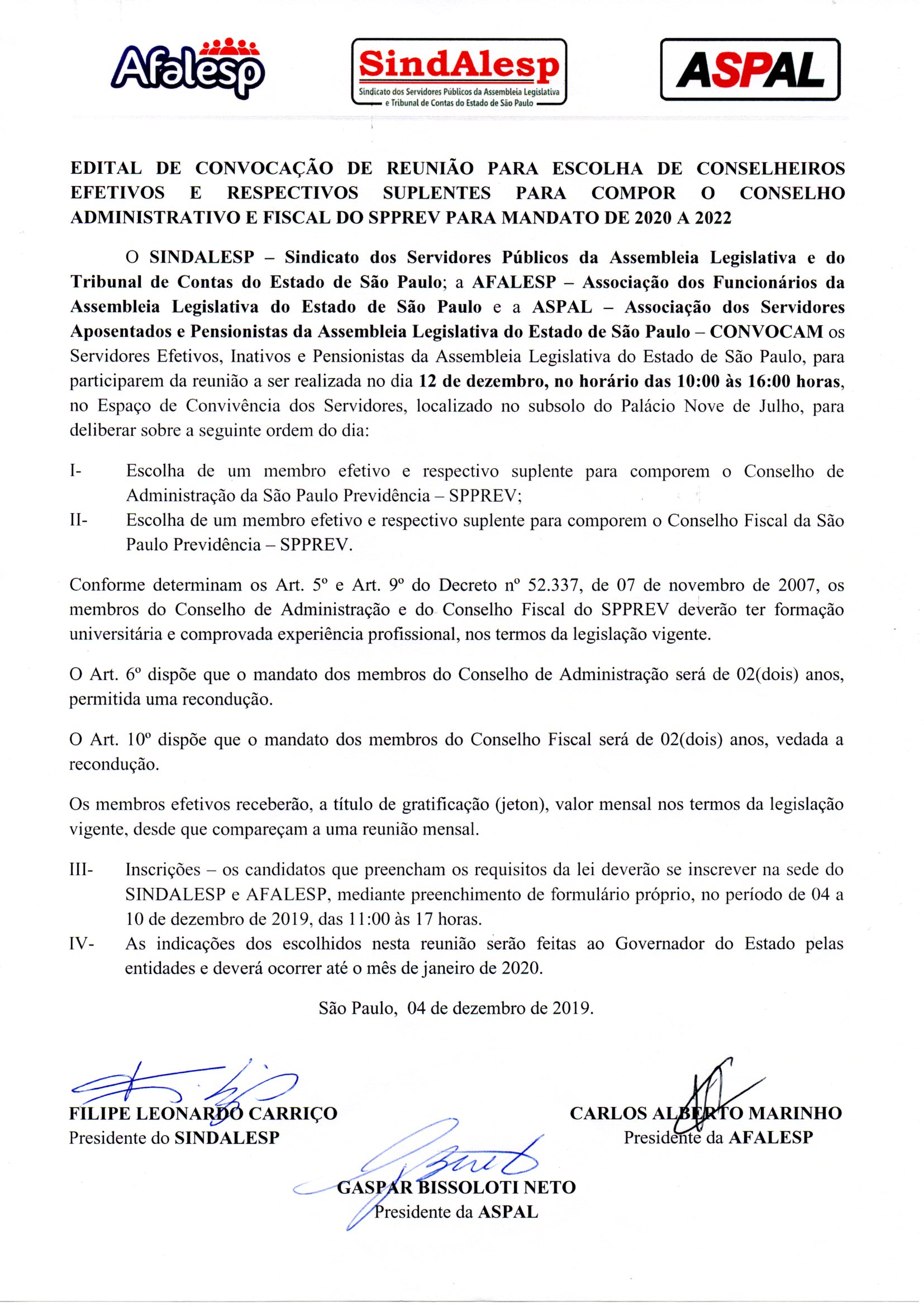 Notícias Galeria – Eleição para conselheiro da SPPREV – Participem quarta-feira, 4 de dezembro de 2019 afalesp