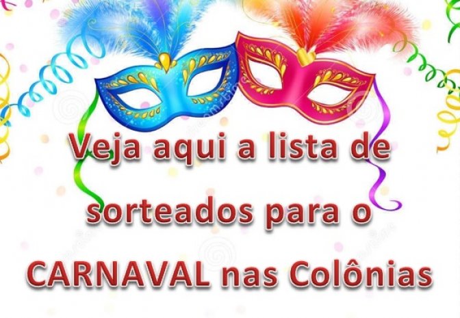 Lista de sorteados para Colônia de Socorro Carnaval.