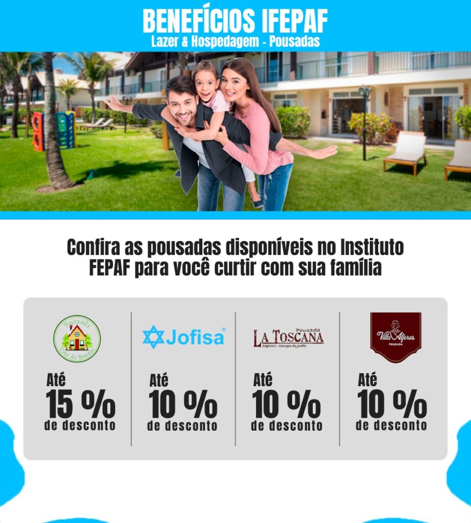 O INSTITUTO FEPAF tem novas parcerias com Hotéis, Pousadas, Parques Aquáticos e Colônia de Férias e muito mais, que disponibilizam descontos aos Colaboradores / Associados da AFALESP!