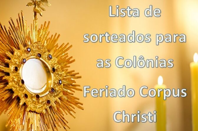 Lista de sorteados para as Colônias feriado Corpus Christi