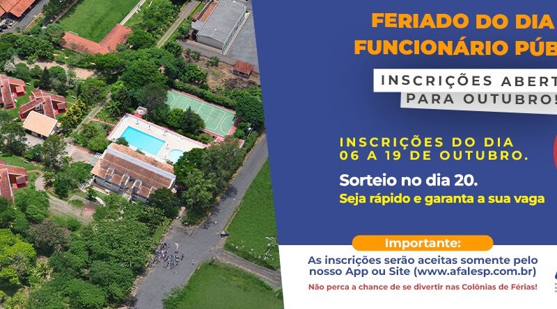 🌟 Feriado do Dia do Funcionário Público chegando! 🌟 As inscrições para as Colônias de Férias já estão abertas e