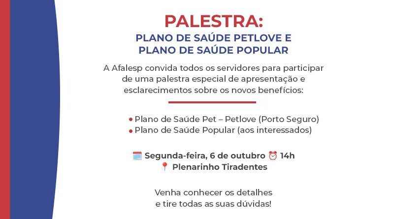 📢 Servidor(a), temos um encontro marcado! Na próxima segunda-feira, 6 de outubro, às 14h, no Plenarinho Tiradentes, a Afalesp promoverá