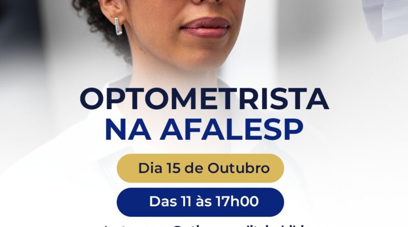 Cuide da sua visão! No dia 15 de outubro, das 11h às 17h, a Afalesp recebe atendimento com optometrista, em