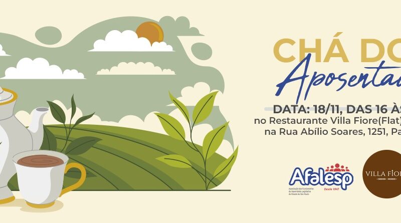 Tradicional CHÁ dos APOSENTADOS da AFALESP Dia 18 de novembro Das 16 às 19h Local: Villa Fiore(Flat) Rua Abílio Soares,