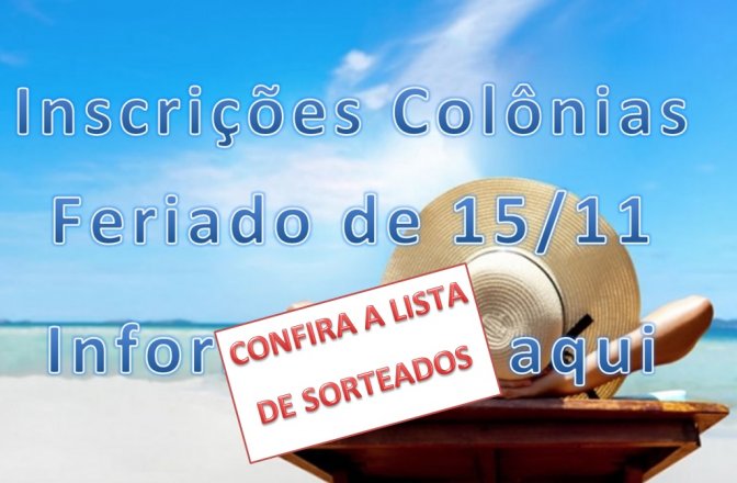 Encerradas as inscrições dia(27/10), não houve sorteio para as Colônias de Caraguá e Socorro. Devido ao número de inscritos a