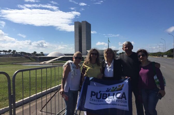 Rita (segunda à esq.) e Joacy (segundo à dir.) na Esplanada dos Ministérios, contra as reformas do Governo Milhares