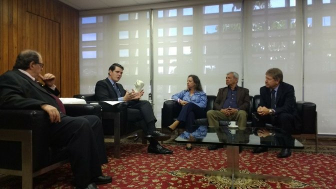Presidente Macris (segundo à esq.) recebe Rita, Joacy e José Carlos (à sua esq.) e Gaspar (à sua dir.)