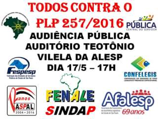 A Afalesp participa nesta terça-feira, 17/5, às 17h, no auditório Teotônio Vilela, da Assembleia Legislativa, de uma reunião com outras